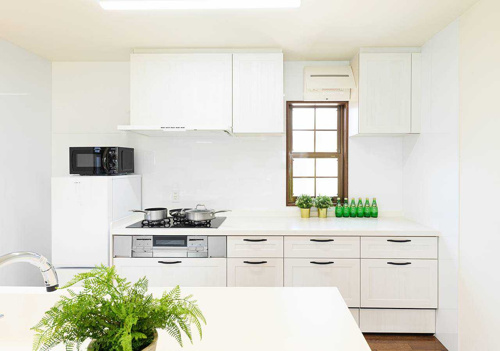 キッチンは白でまとめられていて清潔感・お洒落度満点。